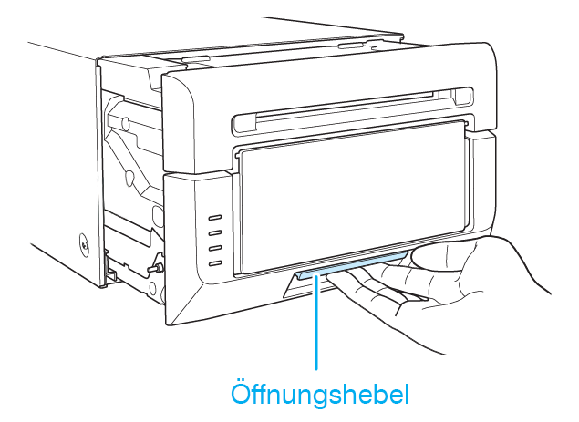 Verwenden Sie den Öffnungshebel zum Öffnen der Verriegelung und ziehen Sie dann die Haupteinheit heraus.