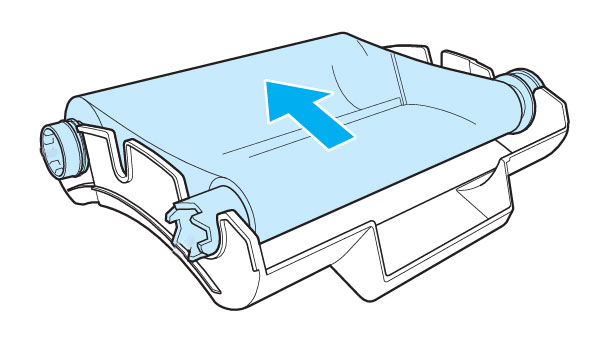 Sollte das Farbband gerissen sein, versuchen Sie das Farbband auf die hintere Rolle aufzuwickeln bis es wieder stramm in der Halterung sitzt.