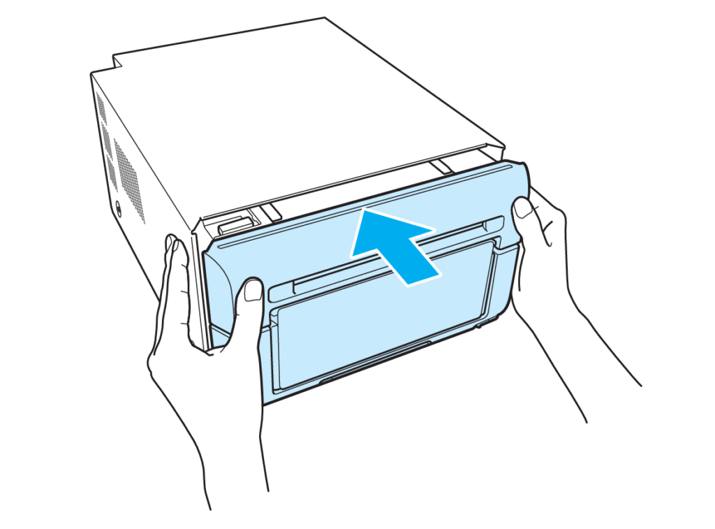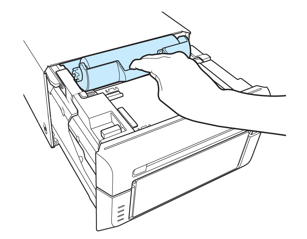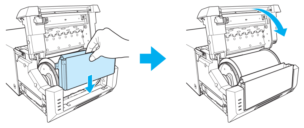 Schließen Sie die Haupteinheit. Wenn die Haupteinheit geschlossen wird, beginnt der Drucker mit der Initialisierung. (Es werden fünf leere Blätter ausgegeben).