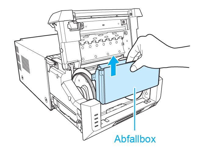 Entfernen sie die Abfallbox indem sie sie nach oben anheben.